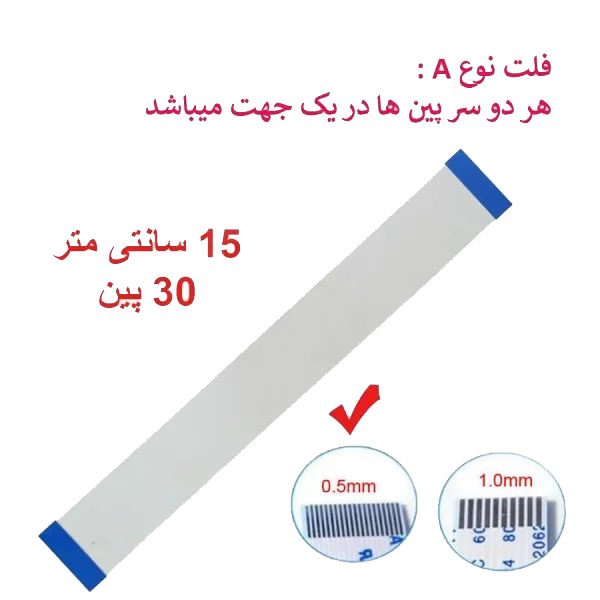 کابل فلت رشته ایی ۳۰ پین – ۱۵ سانت متر – ریز – نوع A